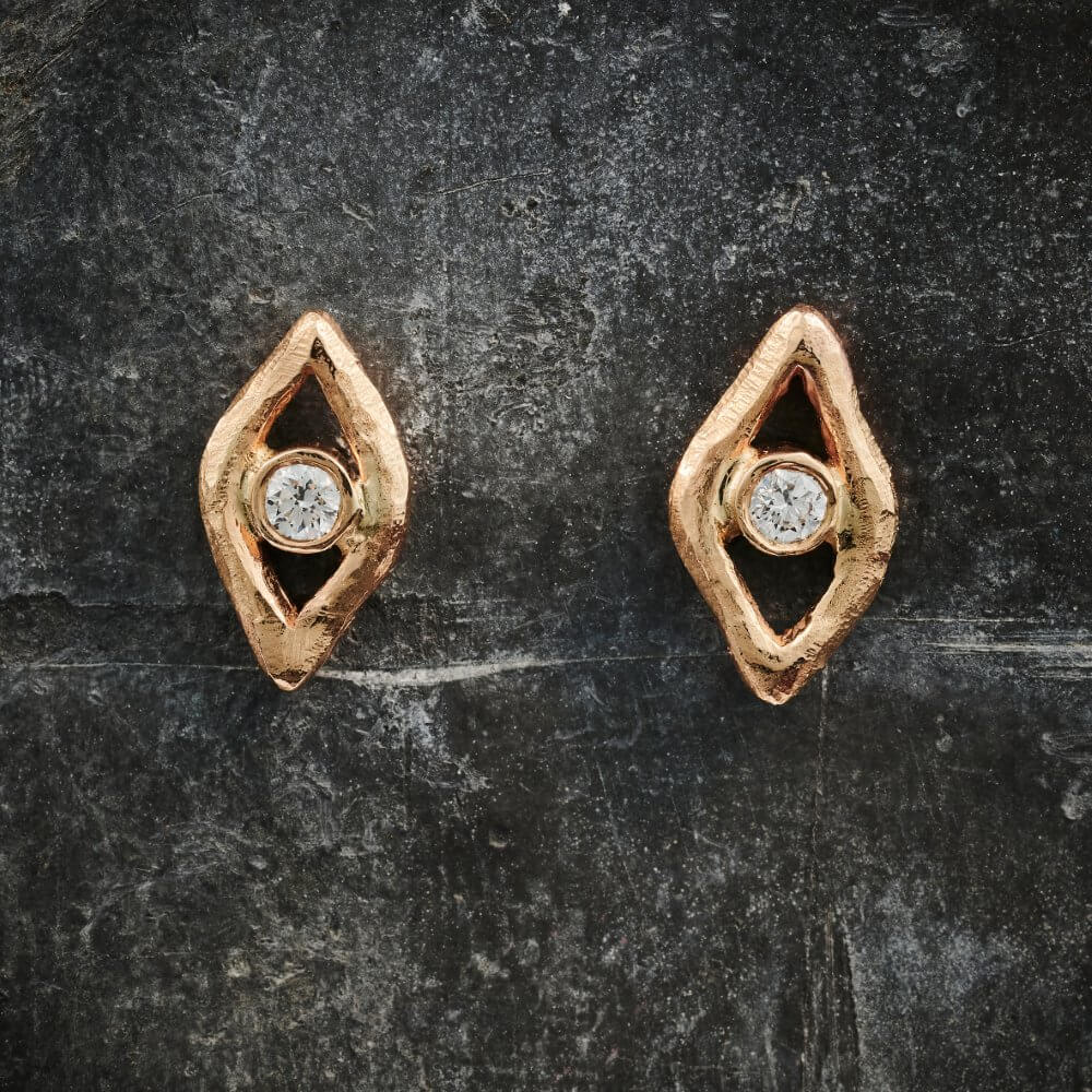Øjeformet ørestik guld, med diamant