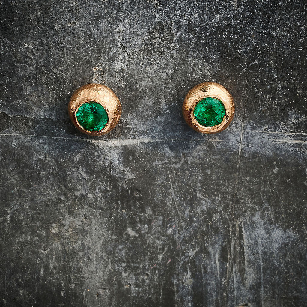 Øresmykke kugle ørestik – 6 mm – 14 kt guld – 2 stk smargd a 3,5 mm
