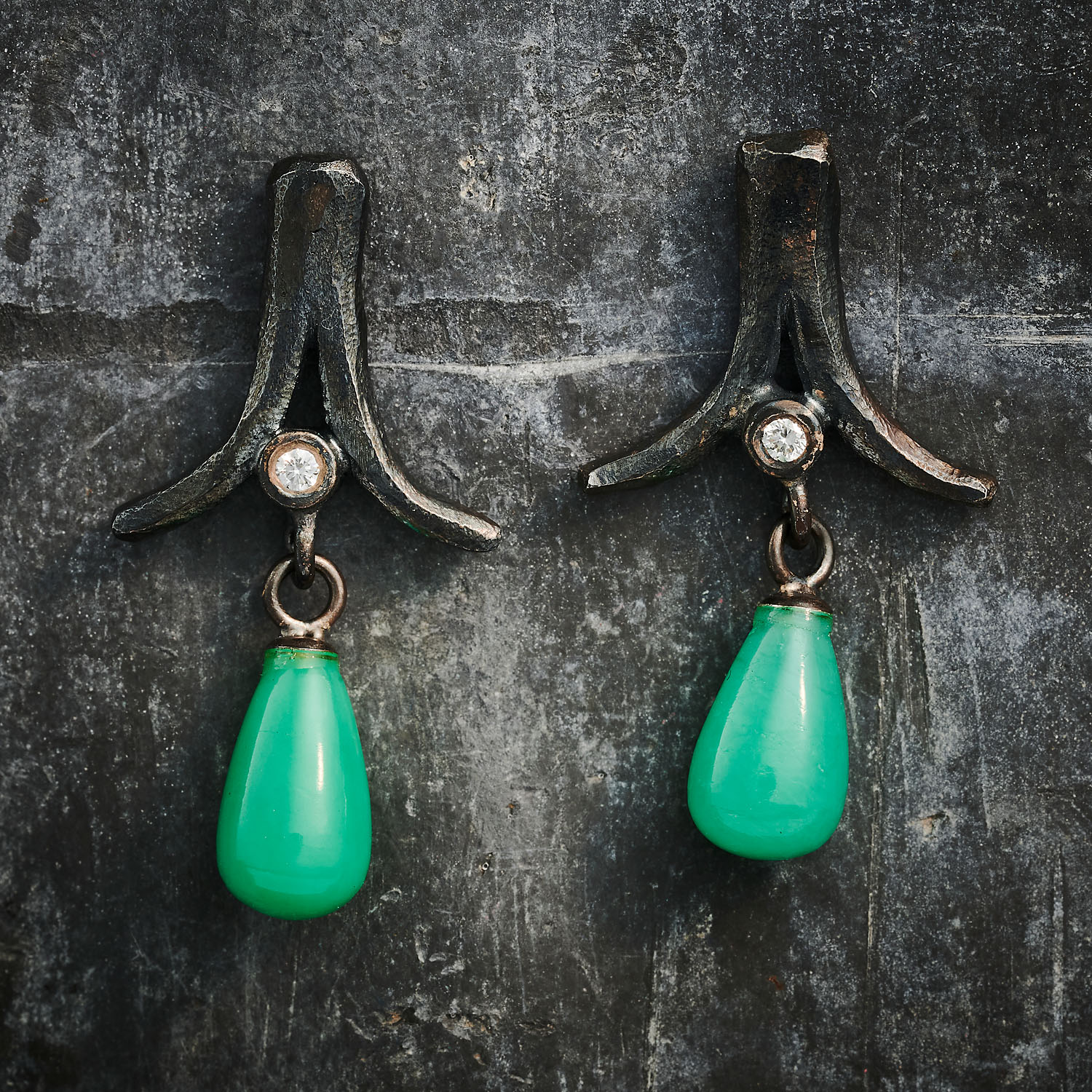 Med dråber af grøn crysopras og 2 stk diamanter a 0,02 ct w/si