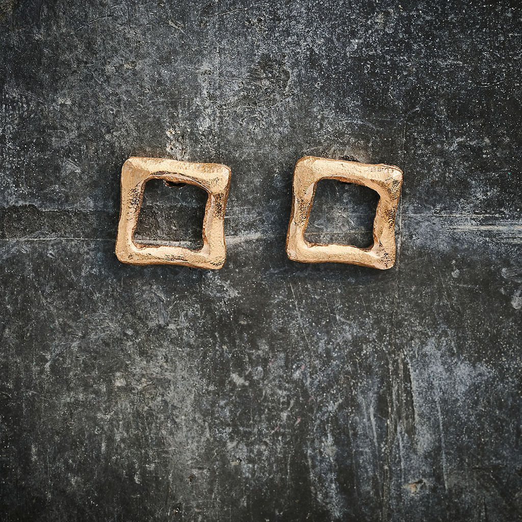 Øresmykke – Square lille – 8×8 mm – 14 kt guld – Ørestik med rustik overfalde