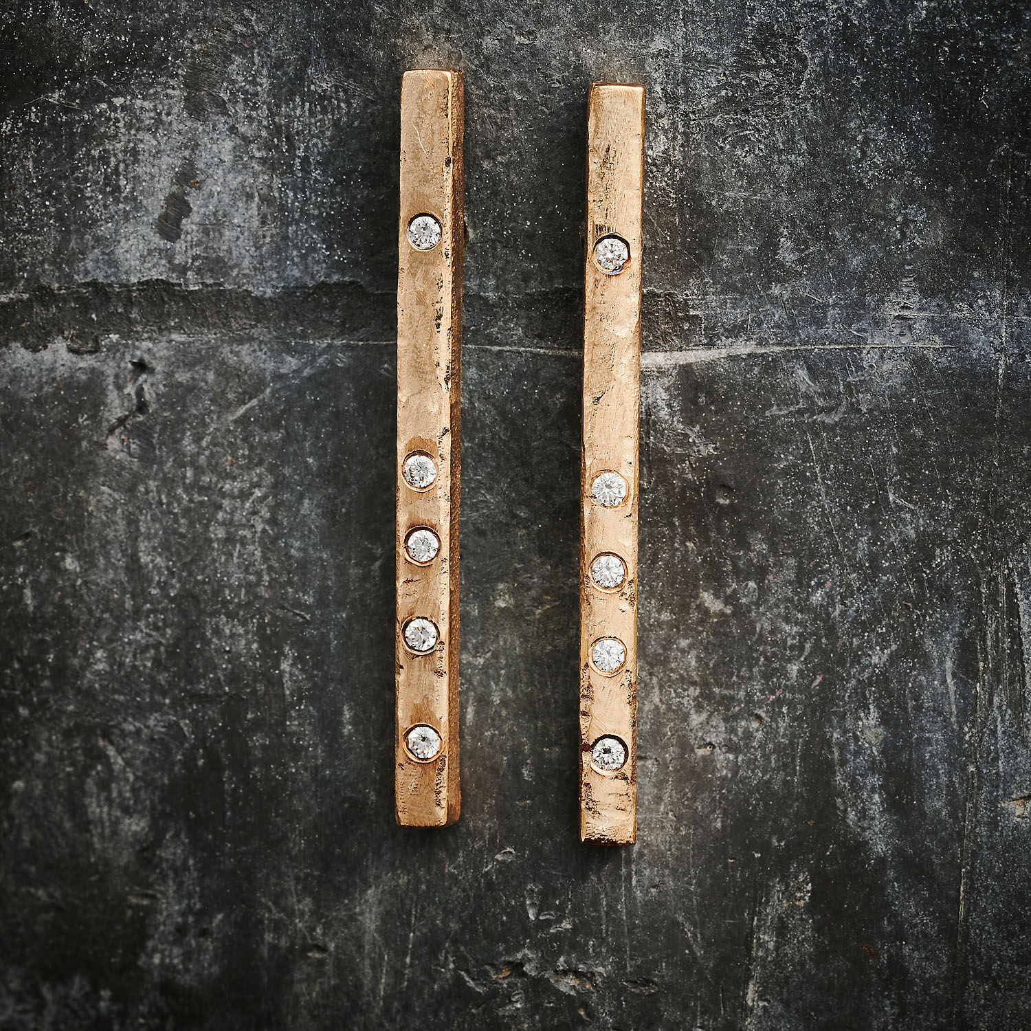 Øresmykke – Stave med diamanter – 3 cm – 14 kt guld – 10 stk diamanter a 0,01 ct w/si