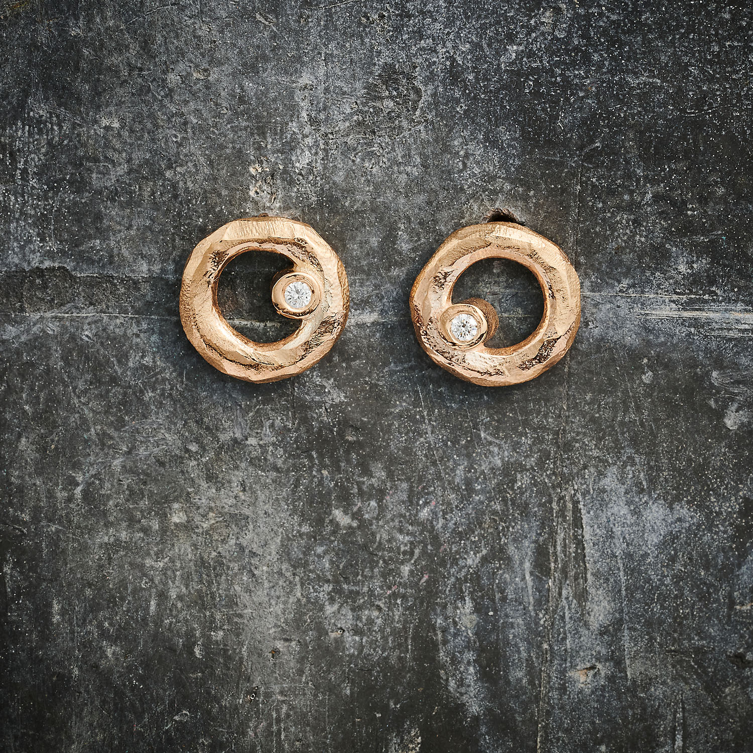 Ørestikker af 14 kt guld med 2 stk 0,01 ct w/si. 3400 kr. 10 mm. Findes også i sølv til 1600 kr.