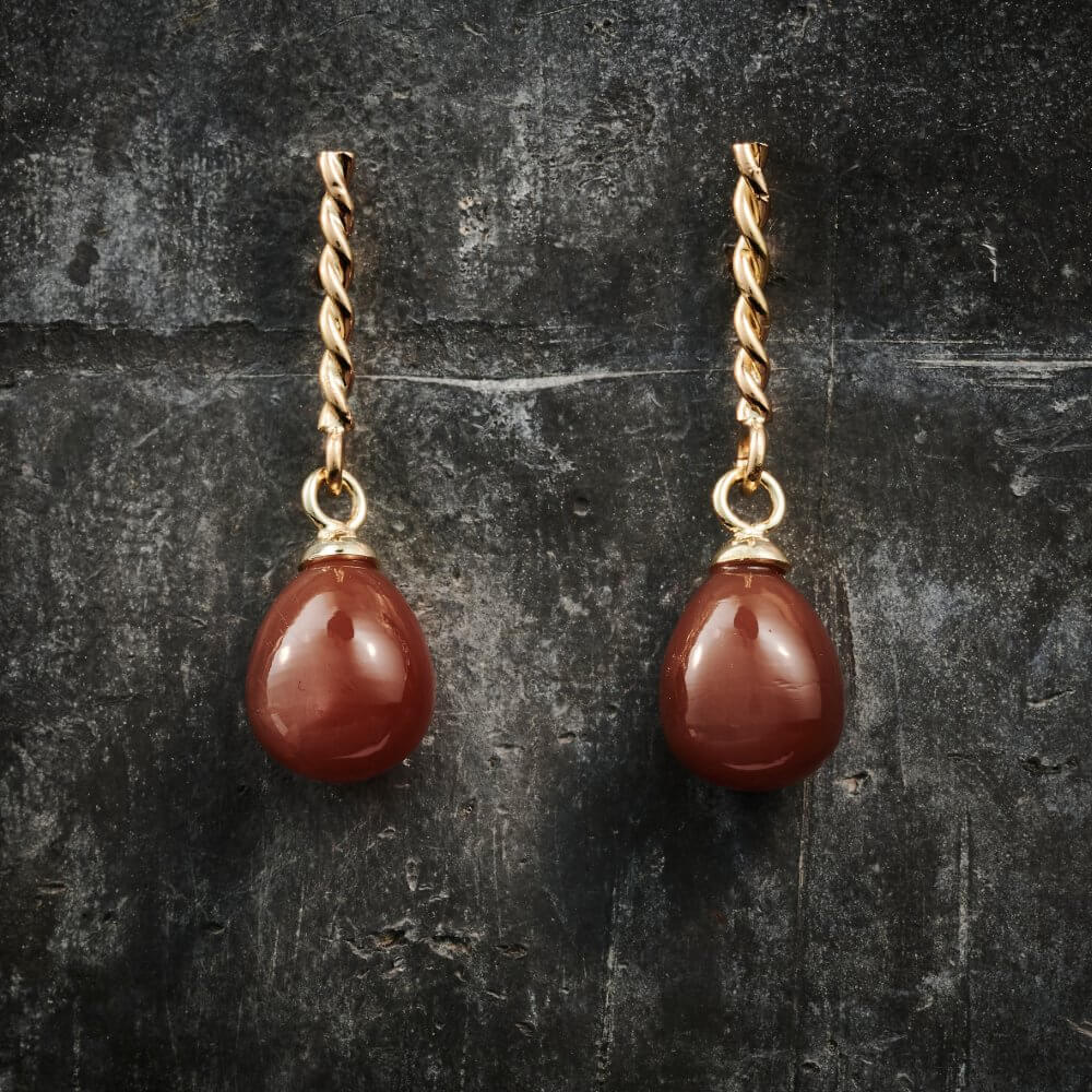Totalt 3 cm lange – Guld 14 kt – Brune månesten