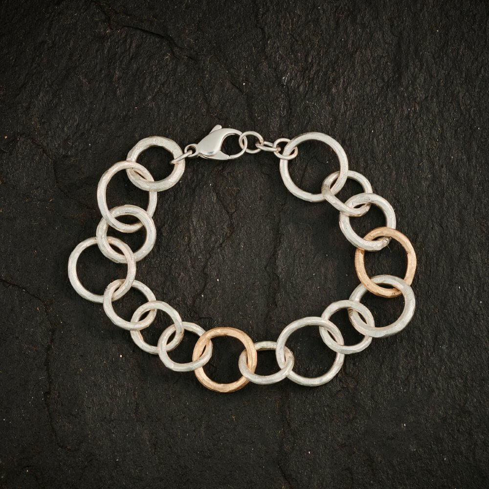 Sølv armbånd med 2 guld led.
