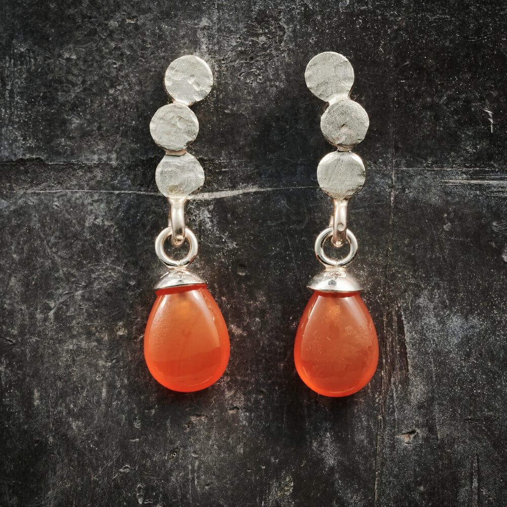 Total længde 2,5 cm – Sølv – Lille carniol dråbe 8 mm