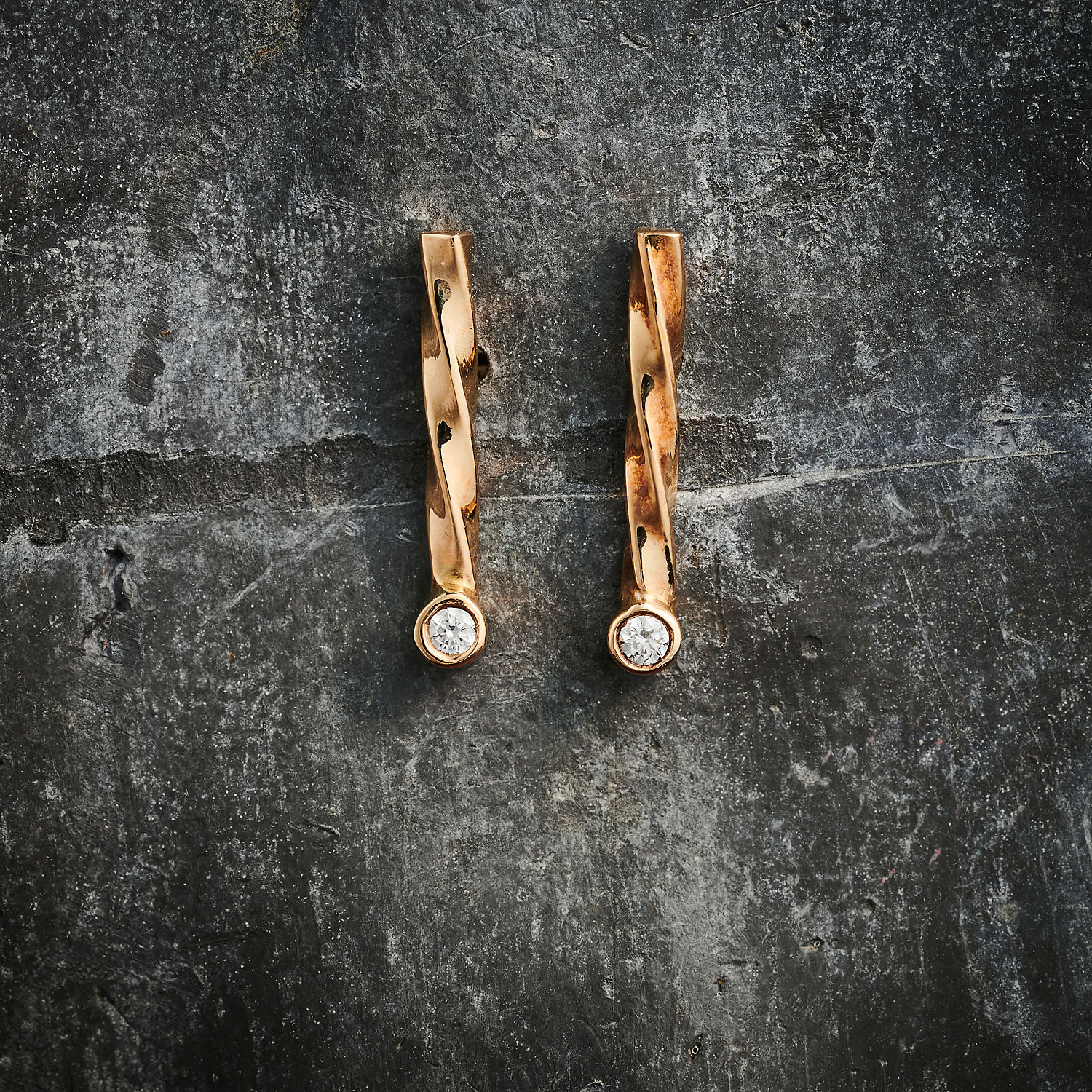 14 kt guld med diamanter 2 stk 0,02 ct w/si. 15 mm lange.